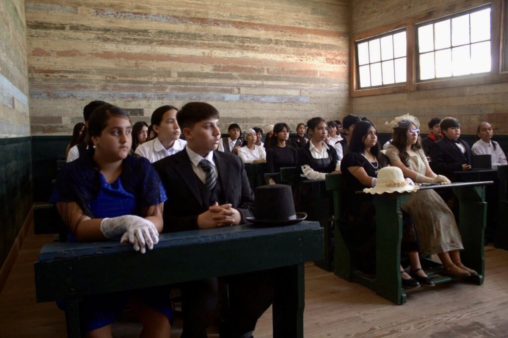 Como parte del proyecto Vida cotidiana en la Oficina Santiago Humberstone, estudiantes de 7º básico de nuestra Escuela Gabriela Mistral, realizaron una salida pedagógica a la salitrera, donde recrearon con vestimentas de época los oficios y espacios de la vida pampina.