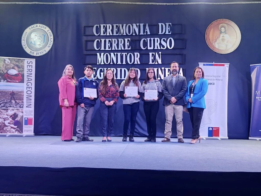 Estudiantes del Instituto Comercial, Liceo Luis Cruz Martínez y Liceo Politécnico fueron reconocidos tras culminar con éxito el curso de Monitor en Seguridad Minera, impartido por Sernageomin y el Centro de Capacitación de Minería y Geología.