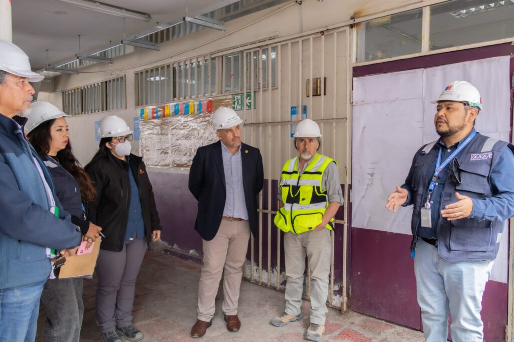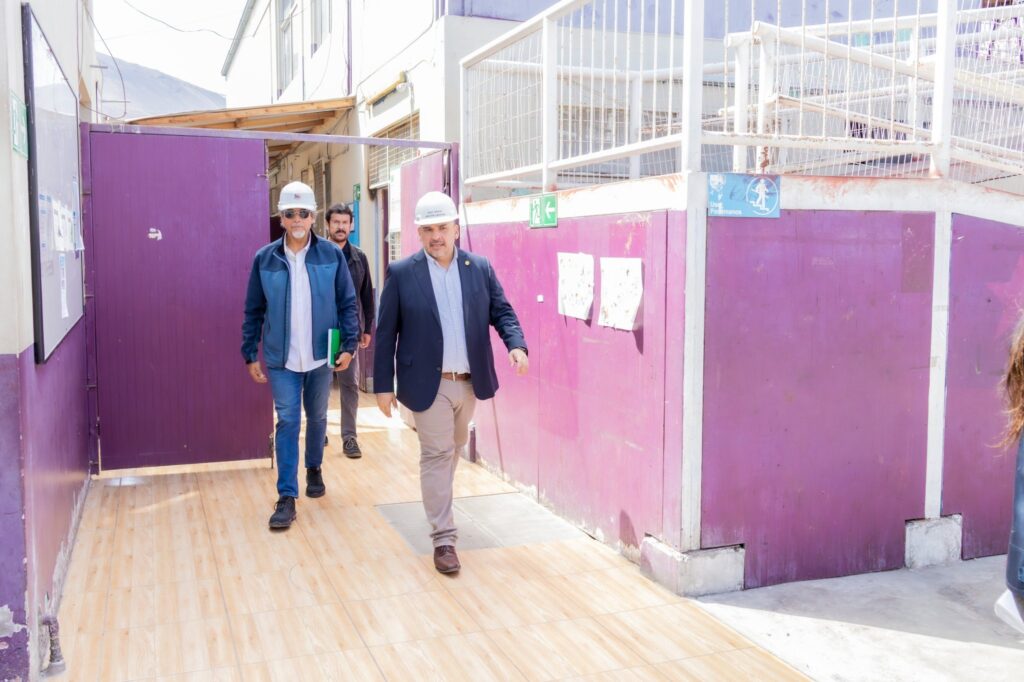 El director ejecutivo del SLEP Iquique, Najle Majluf Morales, junto al equipo de Infraestructura y Mantenimiento, visitó el establecimiento para supervisar los trabajos y constatar el progreso de esta importante mejora.